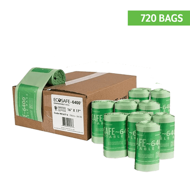 EcoSafe-6400 Compostable Bag and Bin-Liner. BPI Certified.16x17 inches (2.5 gallon)2.5 Gal Compostable Bag/Liner - 16X17 (QTY:90)3 Rolls, 30 Bags/R...