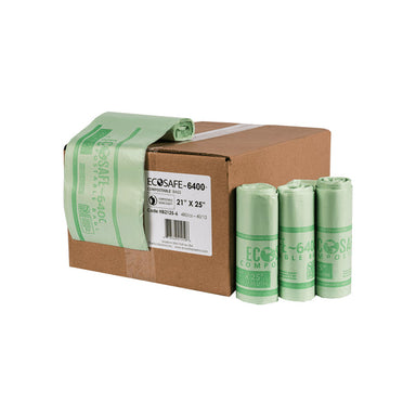 EcoSafe-6400 Compostable Bag and Bin-Liner. BPI Certified Compostable Bags. 21 x 25 inches (8 gallon). NOTE: This is 2 single rolls (not a case pac...