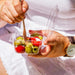8oz hinged clear deli container. Perfect presentation for salad bars - serve cold salads. Made from PLA, a renewable material made from plants. Clear for visibility. Award-winning quality by Vegware, made from plants. Designed for industrial composting.