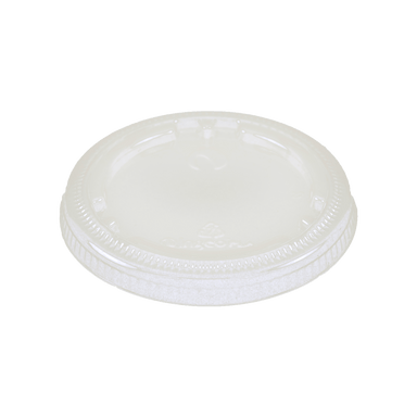 A flat lid for Vegware's 105-Series cups, with a straw hole. A lid for serving cold drinks with a straw. Made from PLA, a renewable material made f...