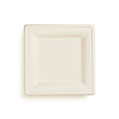 8in square molded fiber plate. Part of the Nourish range. Great for hot or cold use, and sturdy enough to load up with food. Made from reclaimed na...