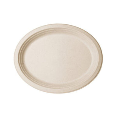 9 x 12in molded fiber oval platter. Part of the Nourish range. Great for hot or cold use, and sturdy enough to load up with food. Made from reclaim...