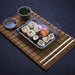 A plant-based sushi tray and lid. Amazing presentation for premium cold platters - sushi, cut fruit, dessert selections, or cheeses. Made from PLA, a renewable material made from plants. Black base with a clear lid for visibility. Award-winning quality by Vegware, made from plants. Designed for industrial composting.