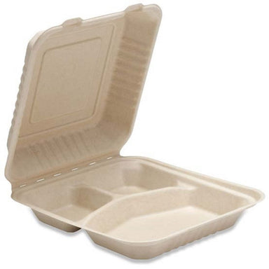 Practical and friendly 8in clamshell container with 3-compartments. Our clamshell box is made from natural molded fiber, an eco-friendly alternativ...