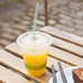 A flat lid for Vegware's 96-Series cups, with a straw hole. A lid for serving cold drinks with a straw. Made from PLA, a renewable material made from plants. Clear for visibility. Award-winning quality by Vegware, packaging made from plants. Designed for industrial composting.
